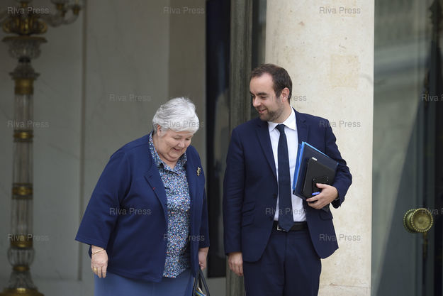 Légende : Conseil des ministres au palais de l'Elysée. Jacqueline Gourault, ministre de la Cohésion des territoires et des Relations avec les Collectivités Territoriales - Sébastien Lecornu, ministre chargé des collectivités territoriales /// Cabinet meeting at the Elysee Palace. Jacqueline Gourault, Minister of Territorial Cohesion and Relations with Territorial Communities - Sébastien Lecornu, Minister for Local Government - Paris - 17/10/2018 - Photo © Lionel Préau +33 (0)6 68 12 83 77