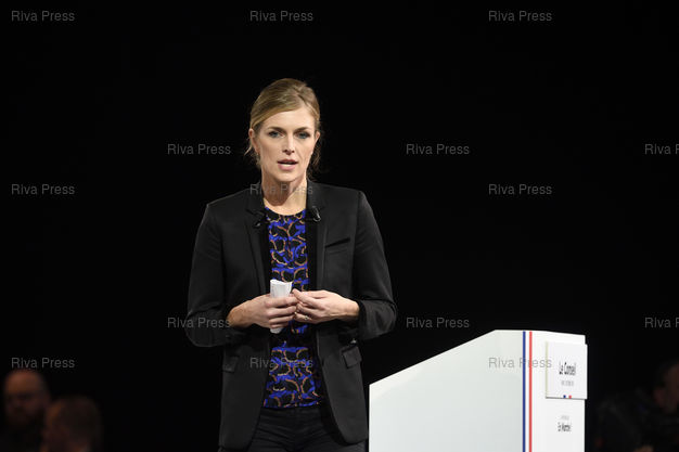 Légende : Conseil de La République En Marche. Carole Gandon, référente départementale LREM en Ille-et-Vilaine, préside le conseil du mouvement présidentiel /// Council of "La Republique En Marche" (Presidential Party). Carole Gandon, departmental referent LREM in Ille-et-Vilaine, presides the council of the presidential movement - Paris - 21/10/2018 - Photo © Lionel Préau +33 (0)6 68 12 83 77