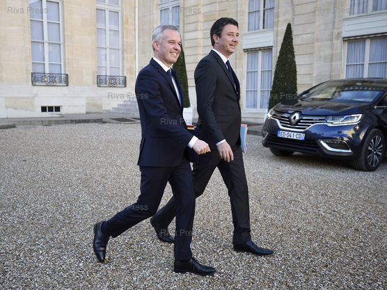 Légende : Conseil des ministres au palais de l'Elysée. François de Rugy, ministre d'Etat, ministre de la Transition écologique et solidaire - Benjamin Griveaux, secrétaire d'Etat auprès du premier ministre, porte-parole du Gouvernement /// Cabinet meeting at the Elysee Palace. François de Rugy, Minister of State, Minister of Ecological and Concerted Transition - Benjamin Griveaux, Junior Minister, Spokesperson of the Government - Paris - 14/11/2018 - Photo © Lionel Préau +33 (0)6 68 12 83 77