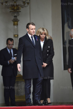 Légende : Accueil des chefs d'Etats et déjeuner au Palais de l'Elysée à l'occasion des commémorations du 11 novembre. Emmanuel et Brigitte Macron /// Heads of State welcome and lunch at the Elysee Palace on the occasion of the commemoration of November 11. Emmanuel and Brigitte Macron - Paris - 11/11/2018 - Photo © Lionel Préau +33 (0)6 68 12 83 77