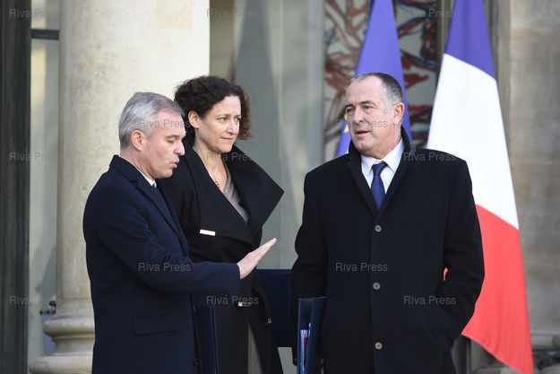 Légende : Conseil des ministres au palais de l'Elysée. François de Rugy, ministre d'Etat, ministre de la Transition écologique et solidaire - Emmanuelle Wargon, secrétaire d'Etat - Didier Guillaume, ministre de l'Agriculture et de l'Alimentation /// Cabinet meeting at the Elysee Palace. François de Rugy, Minister of State, Minister of Ecological and Concerted Transition - Emmanuelle Wargon, Junior Minister - Didier Guillaume, Minister of Agriculture and Food - Paris - 21/11/2018 - Photo © Lionel Préau +33 (0)6 68 12 83 77