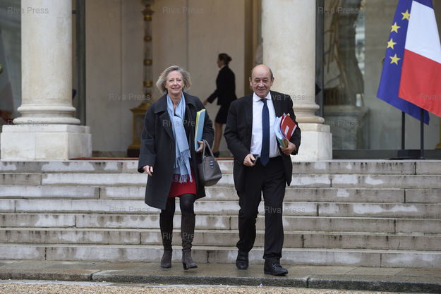 Légende : Conseil des ministres au palais de l'Elysée. Sophie Cluzel, secrétaire d'Etat chargée des Personnes handicapées - Jean-Yves Le Drian, ministre de l'Europe et des Affaires étrangères /// Cabinet meeting at the Elysee Palace. Sophie Cluzel, Junior Minister in charge of Disabled Persons - - Paris - 26/11/2018 - Photo © Lionel Préau +33 (0)6 68 12 83 77