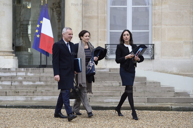 Légende : Conseil des ministres au palais de l'Elysée. François de Rugy, ministre d'Etat, ministre de la Transition écologique et solidaire - Emmanuelle Wargon, secrétaire d'Etat - Brune Poirson, secrétaire d'Etat /// Cabinet meeting at the Elysee Palace. François de Rugy, Minister of State, Minister of Ecological and Concerted Transition - Emmanuelle Wargon, Junior Minister - Paris - 26/11/2018 - Photo © Lionel Préau +33 (0)6 68 12 83 77