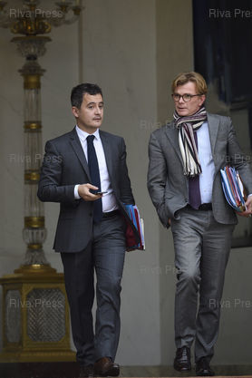 Caption : Conseil des ministres au palais de l'Elysée. Gérald Darmanin, ministre de l'Action et des Comptes publics - Marc Fesneau, ministre auprès du Premier ministre, chargé des Relations avec le Parlement /// Cabinet meeting at the Elysee Palace. Gérald Darmanin, Minister of the Action and Public Accounts - Marc Fesneau, Minister in charge of the Relationships with the Parliament - Paris - 05/12/2018 - Photo © Lionel Préau +33 (0)6 68 12 83 77