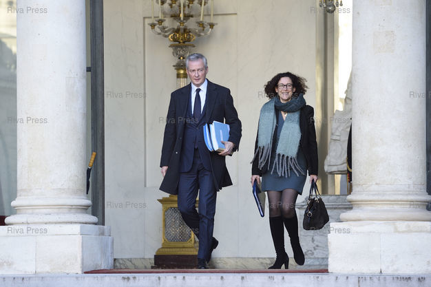 Légende : Conseil des ministres au palais de l'Elysée. Bruno Le Maire, ministre de l'Economie et des Finances - Emmanuelle Wargon, secrétaire d'Etat auprès du ministre d'Etat, ministre de la transition écologique et solidaire /// Cabinet meeting at the Elysee Palace. Bruno Le Maire, Minister of Economy and Finance - Emmanuelle Wargon, Junior Minister to the Minister of State, Minister of Ecological and Solidarity Transition - Paris - 12/12/2018 - Photo © Lionel Préau +33 (0)6 68 12 83 77