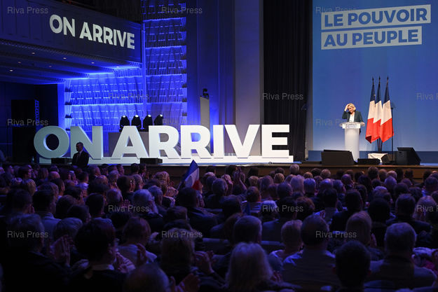Légende : Le Rassemblement National, ex-Front National, lance sa campagne pour les élections européennes (Palais de la Mutualité). Marine Le Pen, présidente du RN /// The Rassemblement National Party, former National Front, launches its campaign for the European elections (Palais de la Mutualité). Marine Le Pen, President of the RN - Paris - 13/01/2019 - Photo © Lionel Préau +33 (0)6 68 12 83 77