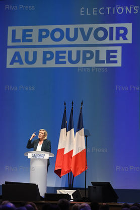 Caption : Le Rassemblement National, ex-Front National, lance sa campagne pour les élections européennes (Palais de la Mutualité). Marine Le Pen, présidente du RN /// The Rassemblement National Party, former National Front, launches its campaign for the European elections (Palais de la Mutualité). Marine Le Pen, President of the RN - Paris - 13/01/2019 - Photo © Lionel Préau +33 (0)6 68 12 83 77