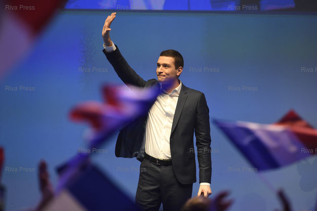Légende : Le Rassemblement National, ex-Front National, lance sa campagne pour les élections européennes (Palais de la Mutualité). Jordan Bardella, tête de liste /// The Rassemblement National Party, former National Front, launches its campaign for the European elections (Palais de la Mutualité). Jordan Bardella, head of list - Paris - 13/01/2019 - Photo © Lionel Préau +33 (0)6 68 12 83 77
