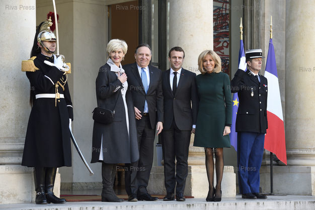 Légende : Emmanuel Macron reçoit François Legault, Premier ministre du Québec, pour un entretien suivi d'un déjeuner, au Palais de l'Élysée. En présence de leurs épouses Brigitte Macron et Isabelle Brais /// Emmanuel Macron receives François Legault, Prome Minister of Quebec, for an interview followed by a lunch at the Élysée Palace. With their wives Brigitte Macron and Isabelle Brais - Paris - 21/01/2019 - Photo © Lionel Préau +33 (0)6 68 12 83 77