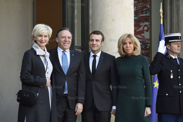 Légende : Emmanuel Macron reçoit François Legault, Premier ministre du Québec, pour un entretien suivi d'un déjeuner, au Palais de l'Élysée. En présence de leurs épouses Brigitte Macron et Isabelle Brais /// Emmanuel Macron receives François Legault, Prome Minister of Quebec, for an interview followed by a lunch at the Élysée Palace. With their wives Brigitte Macron and Isabelle Brais - Paris - 21/01/2019 - Photo © Lionel Préau +33 (0)6 68 12 83 77