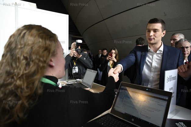 Légende : Jordan Bardella, tête de liste du Rassemblement national pour les élections européennes, visite le Salon des entrepreneurs /// Jordan Bardella, head of list of the far-right Rassemblement National Party (ex-Front National) for European Elections, visits the Entrepreneurs' Fair - Paris - 07/02/2019 - Photo © Lionel Préau +33 (0)6 68 12 83 77