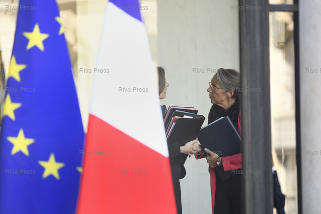 Légende : Conseil des ministres au palais de l'Elysée. Florence Parly, ministre des Armées - Elisabeth Borne, ministre des Transports /// Cabinet meeting at the Elysee Palace. Florence Parly, Minister of the Armed Forces - Elisabeth Borne, Minister of Transports - Paris - 27/02/2019 - Photo © Lionel Préau +33 (0)6 68 12 83 77