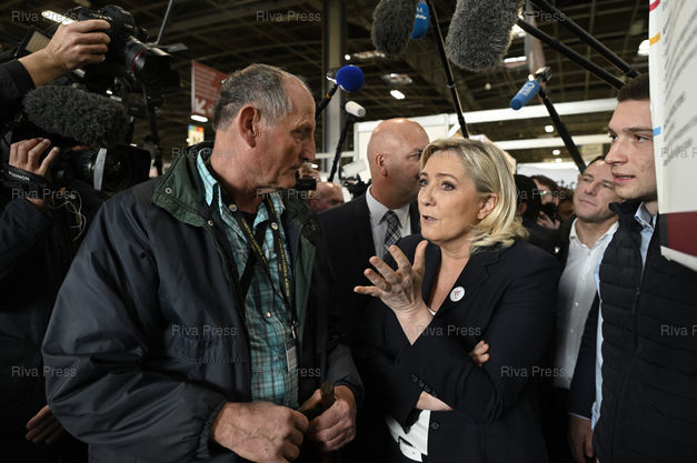 Légende : Marine Le Pen, présidente du Rassemblement National, visite le Salon de l'agriculture, avec Jordan Bardella, tête de liste du parti aux élections européennes /// Marine Le Pen, President of the far-right Rassemblement National Party (ex-Front National), visits the Agricultural Show (Salon de l'agriculture), with Jordan Bardella, head of list of the Party for the European elections - Paris - 28/02/2019 - Photo © Lionel Préau +33 (0)6 68 12 83 77
