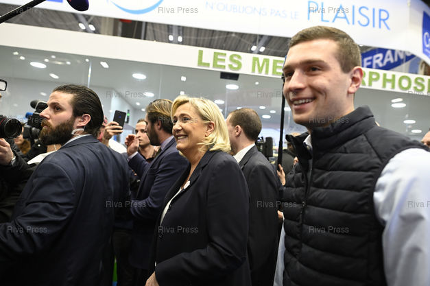 Légende : Marine Le Pen, présidente du Rassemblement National, visite le Salon de l'agriculture, avec Jordan Bardella, tête de liste du parti aux élections européennes /// Marine Le Pen, President of the far-right Rassemblement National Party (ex-Front National), visits the Agricultural Show (Salon de l'agriculture), with Jordan Bardella, head of list of the Party for the European elections - Paris - 28/02/2019 - Photo © Lionel Préau +33 (0)6 68 12 83 77