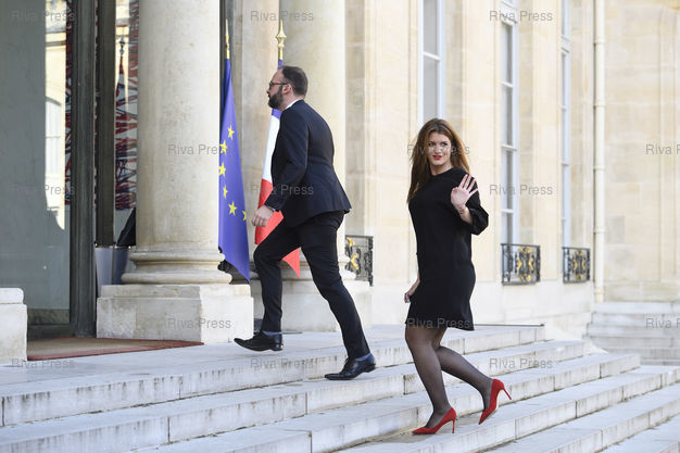 Légende : Remise du premier "Prix Simone Veil de la République française pour l'égalité femmes - hommes" au Palais de l'Elysée à l'occasion de la Journée internationale des femmes. Marlène Schiappa, secrétaire d'Etat auprès du Premier ministre, chargée de l'égalité entre les femmes et les hommes et de la lutte contre les discriminations, et son mari Cédric Bruguière /// Award of the first "Simone Veil Prize of the French Republic for gender equality" at the Elysée Palace on the occasion of the International Women's Day. Marlène Schiappa, Junior Minister to the Prime Minister, in charge of equality between women and men and the fight against discrimination, and her husband Cédric Bruguière - Paris - 08/03/2019 - Photo © Lionel Préau +33 (0)6 68 12 83 77