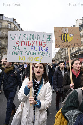 Légende : Grève et manifestation mondiale des jeunes pour le climat dans le cadre du mouvement mondial "Friday for Future", grève scolaire pour le climat /// Youth world strike and demonstration for the climate in the framework of the global "Friday for Future" movement, school strike for the climate - Paris - 15/03/2019 - Photo © Lionel Préau +33 (0)6 68 12 83 77