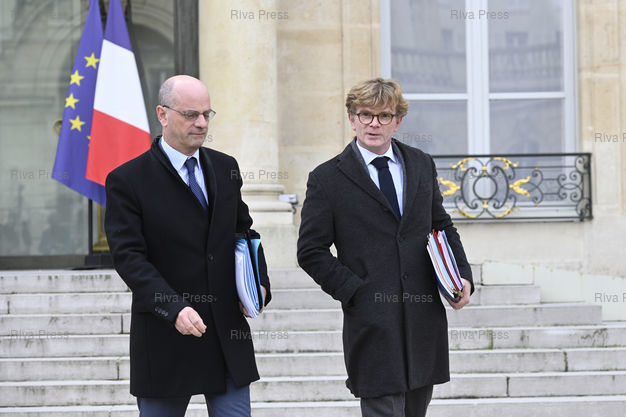Légende : Conseil des ministres au palais de l'Elysée. Jean-Michel Blanquer, ministre de l'Education nationale et de la Jeunesse - Marc Fesneau, ministre auprès du Premier ministre, chargé des Relations avec le Parlement /// Cabinet meeting at the Elysee Palace. Jean-Michel Blanquer, Minister of National Education and Youth - Marc Fesneau, Minister in charge of the Relationships with the Parliament - Paris - 20/03/2019 - Photo © Lionel Préau +33 (0)6 68 12 83 77