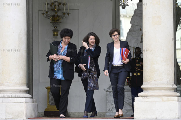 Légende : Conseil des ministres au palais de l'Elysée. Frédérique Vidal, ministre de l'Enseignement supérieur, de la Recherche et de l'Innovation - Agnès Buzyn, ministre des Solidarités et de la Santé - Christelle Dubos, secrétaire d'Etat auprès de la ministre des Solidarités et de la Santé /// Cabinet meeting at the Elysee Palace. Frédérique Vidal, Minister of Higher Education, Research and Innovation - Agnès Buzyn, Minister of the Solidarities and Health - Christelle Dubos, Junior Minister to the Minister of Solidarities and Health - Paris - 20/03/2019 - Photo © Lionel Préau +33 (0)6 68 12 83 77