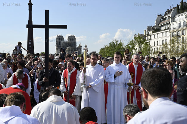 Légende : Procession du chemin de croix autour de la cathédrale Notre-Dame de Paris /// Procession of the way of the cross around Notre-Dame Cathedral - Paris - 19/04/2019 - Photo © Lionel Préau +33 (0)6 68 12 83 77