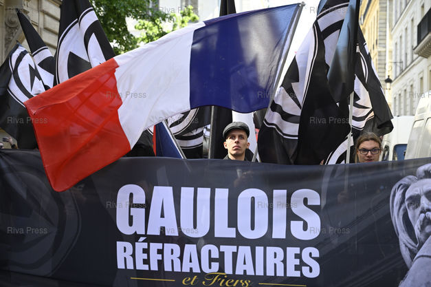 Légende : Défilé de groupes d'extrême droite en hommage à Jeanne d'Arc. Militants de la Dissidence Française /// Parade of far right groups in tribute to Joan of Arc. Activists of Dissidence Française - Paris - 12/05/2019 - Photo © Lionel Préau +33 (0)6 68 12 83 77