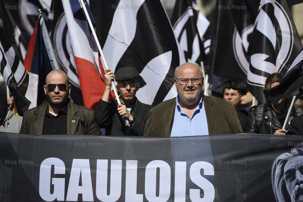 Légende : Défilé de groupes d'extrême droite en hommage à Jeanne d'Arc. Vincent Vauclin, président de la Dissidence Française, qui conduit la "liste de la reconquête nationale, sociale et identitaire" aux élections européennes - Roland Hélie, directeur de Synthèse nationale /// Parade of far right groups in tribute to Joan of Arc. Vincent Vauclin, president of the Dissidence Française, who leads the "list of the national, social and identity reconquest" for the European elections - Roland Hélie, director of Synthèse Nationale - Paris - 12/05/2019 - Photo © Lionel Préau +33 (0)6 68 12 83 77