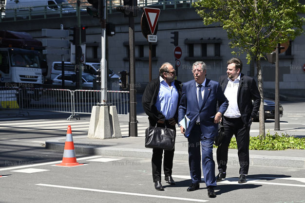 Légende : Patrick Balkany arrive au tribunal, accompagné de son avocat Eric Dupond-Moretti, pour la 2ème journée de son procès, poursuivi avec sa femme pour fraude fiscale et blanchiment de fraude fiscale aggravée. Le maire de Levallois-Perret et son épouse sont notamment soupçonnés d'avoir dissimulé à l'administration fiscale un patrimoine d'au moins 13 millions d'euros /// Patrick Balkany arrives in court, accompanied by his lawyer Eric Dupond-Moretti, for the second day of his trial, sued with his wife for tax fraud and aggravated tax evasion. The mayor of Levallois-Perret and his wife are notably suspected of having concealed from the tax administration assets of at least 13 million euros - Paris - 14/05/2019 - Photo © Lionel Préau +33 (0)6 68 12 83 77