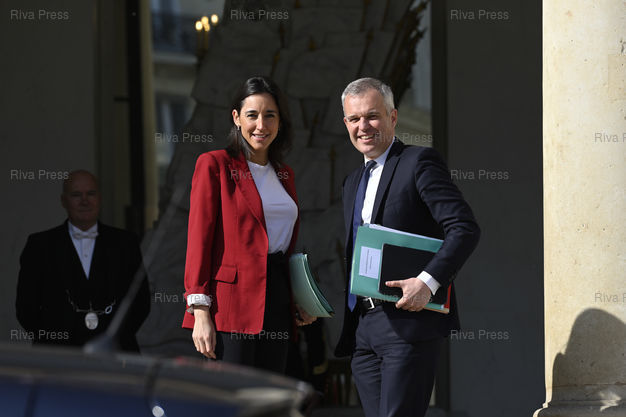 Légende : Premier Conseil de défense écologique au palais de l'Elysée. François de Rugy, ministre d'Etat, ministre de la Transition écologique et solidaire, et Brune Poirson, secrétaire d'Etat /// First Ecological Defense Council at the Elysée Palace. François de Rugy, Minister of State, Minister of Ecological and Concerted Transition, and Brune Poirson, Junior Minister - Paris - 23/05/2019 - Photo © Lionel Préau +33 (0)6 68 12 83 77