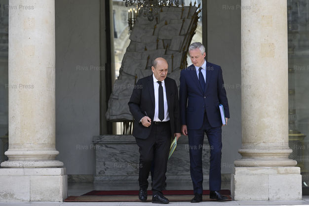 Légende : Premier Conseil de défense écologique au palais de l'Elysée. Jean-Yves Le Drian, ministre de l'Europe et des Affaires étrangères - Bruno Le Maire, ministre de l'Economie et des Finances /// First Ecological Defense Council at the Elysée Palace. Jean-Yves Le Drian, Minister of Europe and Foreign Affairs - Bruno Le Maire, Minister of Economy and Finance - Paris - 23/05/2019 - Photo © Lionel Préau +33 (0)6 68 12 83 77