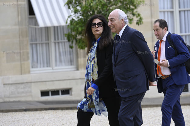 Légende : Réception à l'Elysée à l'occasion du cinquantième anniversaire de l'élection de Georges Pompidou. Françoise Bettencourt Meyers, fille de Liliane Bettencourt, héritière du groupe industriel L'Oréal, et son mari Jean-Pierre Meyers /// Reception at the Elysee Palace on the occasion of the fiftieth anniversary of the election of Georges Pompidou. Françoise Bettencourt Meyers, daughter of Liliane Bettencourt, heiress of the L'Oréal industrial group, and her husband Jean-Pierre Meyers - Paris - 19/06/2019 - Photo © Lionel Préau +33 (0)6 68 12 83 77