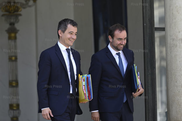 Légende : Conseil des ministres au palais de l'Elysée. Gérald Darmanin, ministre de l'Action et des Comptes publics - Sébastien Lecornu, ministre chargé des collectivités territoriales /// Cabinet meeting at the Elysee Palace. Gérald Darmanin, Minister of the Action and Public Accounts - Sébastien Lecornu, Minister for Local Government - Paris - 25/06/2019 - Photo © Lionel Préau +33 (0)6 68 12 83 77