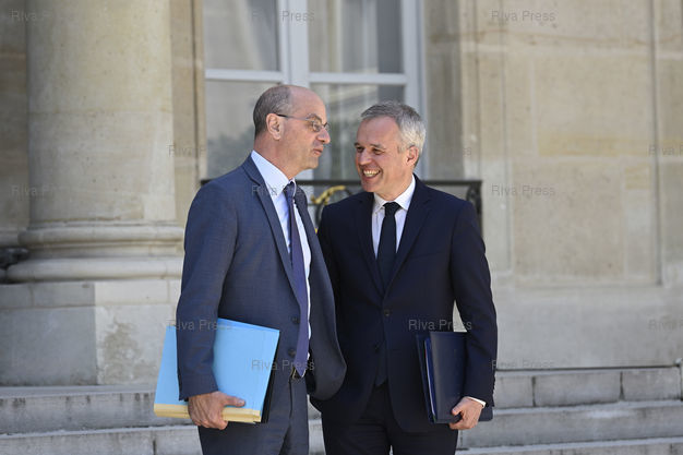 Légende : Conseil des ministres au palais de l'Elysée. Jean-Michel Blanquer, ministre de l'Education nationale et de la Jeunesse - François de Rugy, ministre d'Etat, ministre de la Transition écologique et solidaire /// Cabinet meeting at the Elysee Palace. Jean-Michel Blanquer, Minister of National Education and Youth - François de Rugy, Minister of State, Minister of Ecological and Concerted Transition - Paris - 03/07/2019 - Photo © Lionel Préau +33 (0)6 68 12 83 77