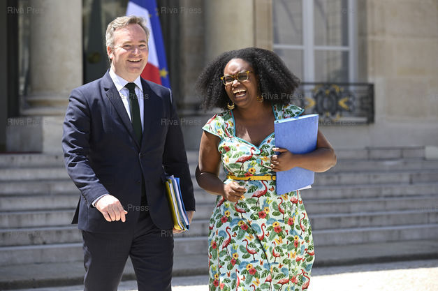 Légende : Conseil des ministres au palais de l'Elysée. Jean-Baptiste Lemoyne, secrétaire d'Etat auprès du ministre de l'Europe et des Affaires étrangères - Sibeth NDiaye, secrétaire d'Etat auprès du premier ministre, porte-parole du Gouvernement /// Cabinet meeting at the Elysee Palace. Jean-Baptiste Lemoyne, Junior Minister attached to the Minister of Europe and Foreign Affairs - Sibeth NDiaye, Junior Minister, Spokesperson of the Government - Paris - 03/07/2019 - Photo © Lionel Préau +33 (0)6 68 12 83 77