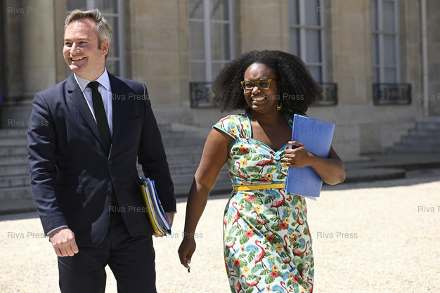 Légende : Conseil des ministres au palais de l'Elysée. Jean-Baptiste Lemoyne, secrétaire d'Etat auprès du ministre de l'Europe et des Affaires étrangères - Sibeth NDiaye, secrétaire d'Etat auprès du premier ministre, porte-parole du Gouvernement /// Cabinet meeting at the Elysee Palace. Jean-Baptiste Lemoyne, Junior Minister attached to the Minister of Europe and Foreign Affairs - Sibeth NDiaye, Junior Minister, Spokesperson of the Government - Paris - 03/07/2019 - Photo © Lionel Préau +33 (0)6 68 12 83 77