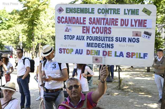 Légende : Les malades de Lyme et leurs proches manifestent pour réclamer "des solutions concrètes" au gouvernement, jugé trop attentiste sur la reconnaissance et la prise en charge de cette maladie transmise par les tiques /// Lyme patients and their relatives demonstrate to demand "concrete solutions" to the government, considered too wait-and-see on the recognition and management of this disease transmitted by ticks - Paris - 03/07/2019 - Photo © Lionel Préau +33 (0)6 68 12 83 77
