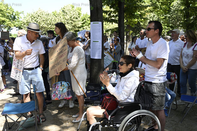 Légende : Les malades de Lyme et leurs proches manifestent pour réclamer "des solutions concrètes" au gouvernement, jugé trop attentiste sur la reconnaissance et la prise en charge de cette maladie transmise par les tiques /// Lyme patients and their relatives demonstrate to demand "concrete solutions" to the government, considered too wait-and-see on the recognition and management of this disease transmitted by ticks - Paris - 03/07/2019 - Photo © Lionel Préau +33 (0)6 68 12 83 77
