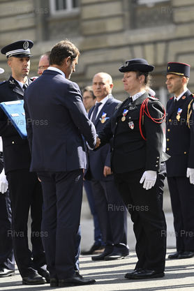 Légende : Commémoration du 75ème anniversaire de la libération de Paris à la Préfecture de Police de Paris. Christophe Castaner, ministre de l'Intérieur, décore une gardienne de la paix /// Commemoration of the 75th anniversary of the liberation of Paris at the Paris Police Prefecture. Christophe Castaner, Minister of the Interior, decorate a policewoman - Paris - 20/08/2019 - Photo © Lionel Préau +33 (0)6 68 12 83 77
