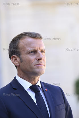 Caption : Emmanuel Macron reçoit Boris Johnson, Premier ministre du Royaume-Uni, pour un déjeuner au palais de l'Elysée /// Emmanuel Macron receives Boris Johnson, Prime Minister of the United Kingdom, for a working lunch at the Elysee Palace - Paris - 22/08/2019 - Photo © Lionel Préau +33 (0)6 68 12 83 77