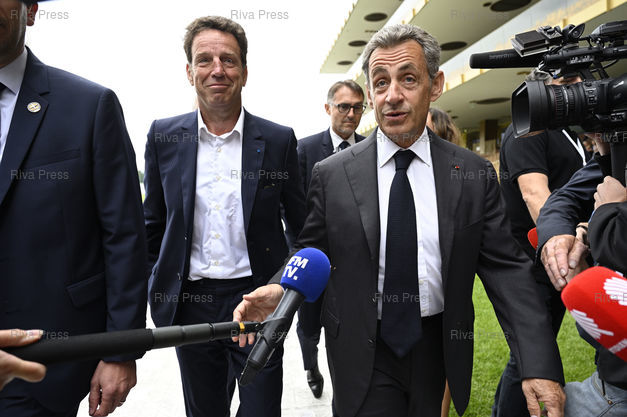Caption : La Rencontre des Entrepreneurs de France (Université d'été du Medef). Nicolas Sarkozy, accompagné par Geoffroy Roux de Bézieux, président du MEDEF /// Summer Conference of the Medef, Movement of the Enterprises of France, employer federation in France. Nicolas Sarkozy, with Geoffroy Roux de Bézieux, President of the MEDEF - Paris - 29/08/2019 - Photo © Lionel Préau +33 (0)6 68 12 83 77