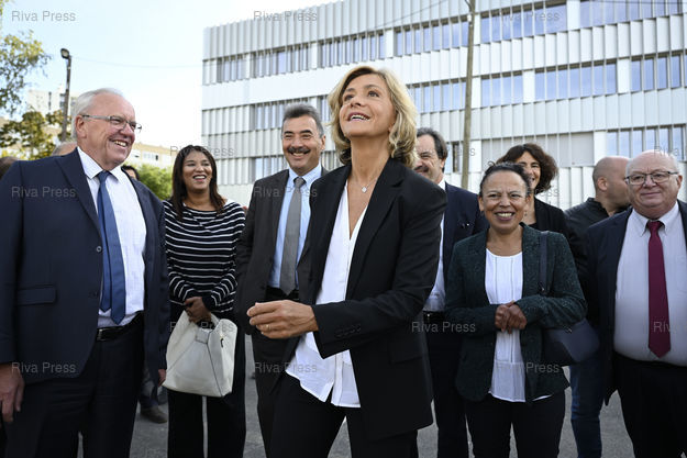 Légende : Valérie Pécresse, présidente de la région Ile-de-France, inaugure la première tranche de travaux du lycée Fernand-et Nadia-Léger, pose la première pierre de la seconde tranche, et remet des tablettes numériques aux élèves de l'établissement d'Argenteuil. EN présence de Georges Mothron, maire d'Argenteuil /// Valérie Pécresse, President of the Ile-de-France Region, inaugurates the first phase of work at the Fernand-et-Nadia-Léger high school, lays the foundation stone for the second phase, and gives digital tablets to the school's students in Argenteuil (suburbs of Paris). With Georges Mothron, Major of Argenteuil - Argenteuil - 02/09/2019 - Photo © Lionel Préau +33 (0)6 68 12 83 77