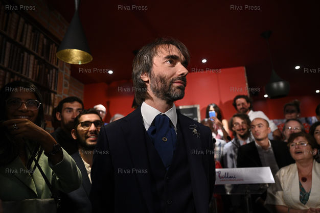 Légende : Cédric Villani officialise sa candidature dissidente à la prochaine élection du maire de Paris lors d'une déclaration dans une brasserie du XIVe arrondissement /// Cédric Villani formalizes his dissident candidacy for the next election of the mayor of Paris during a declaration in a brewery of the 14th arrondissement - Paris - 04/09/2019 - Photo © Lionel Préau +33 (0)6 68 12 83 77