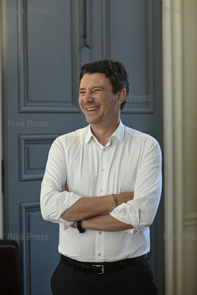 Caption : Benjamin Griveaux, candidat LREM à la mairie de Paris, rencontre des artisans d'art de l'atelier Mériguet-Carrère /// Benjamin Griveaux, LREM candidate for mayor of Paris, meets artisans of the workshop Mériguet-Carrère - Paris - 17/09/2019 - Photo © Lionel Préau +33 (0)6 68 12 83 77