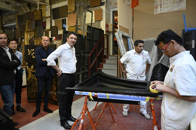 Légende : Benjamin Griveaux, candidat LREM à la mairie de Paris, rencontre des artisans d'art de l'atelier Mériguet-Carrère /// Benjamin Griveaux, LREM candidate for mayor of Paris, meets artisans of the workshop Mériguet-Carrère - Paris - 17/09/2019 - Photo © Lionel Préau +33 (0)6 68 12 83 77