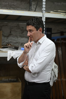 Légende : Benjamin Griveaux, candidat LREM à la mairie de Paris, rencontre des artisans d'art de l'atelier Mériguet-Carrère /// Benjamin Griveaux, LREM candidate for mayor of Paris, meets artisans of the workshop Mériguet-Carrère - Paris - 17/09/2019 - Photo © Lionel Préau +33 (0)6 68 12 83 77