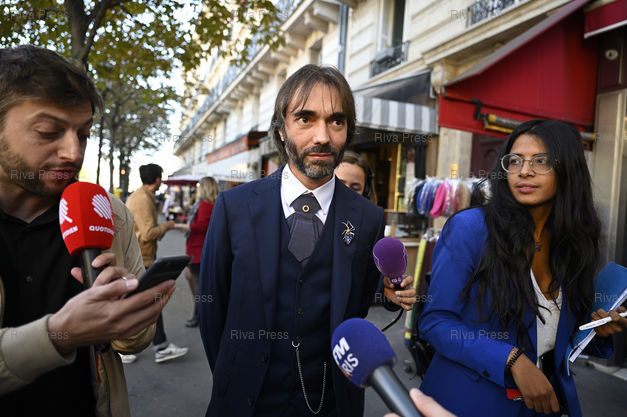 Légende : Cédric Villani, candidat à la mairie de Paris, présente son équipe de campagne lors d'un point presse au café Le Parvis à proximité de son QG de campagne /// Cédric Villani, candidate for mayor of Paris, presents his campaign team during a press point at the café Le Parvis near his HQ campaign - Paris - 19/09/2019 - Photo © Lionel Préau +33 (0)6 68 12 83 77