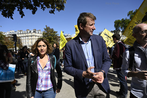 Caption : Grève mondiale des jeunes et marche pour le climat à la veille du Sommet de l'ONU pour le climat lundi à New York. Yannick Jadot, député européen, et sa compagne Isabelle Saporta /// Global Youth Strike and Climate Walk on the eve of the UN Climate Summit Monday in New York. Yannick Jadot, MEP, and girlfriend Isabelle Saporta - Paris - 20/09/2019 - Photo © Lionel Préau +33 (0)6 68 12 83 77