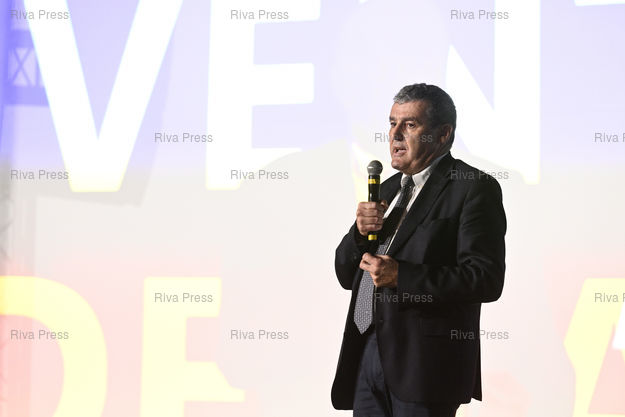 Légende : Première "Convention de la droite", réunion de la droite nationaliste et identitaire, pour une "alternative au progressisme" (La Palmeraie). Xavier Breton, député de l'Ain /// First "Convention of the Right", meeting of the nationalist and far-right, for an "alternative to progressism" (La Palmeraie). Xavier Breton, MP of Ain - Paris - 28/09/2019 - Photo © Lionel Préau +33 (0)6 68 12 83 77