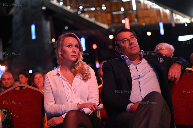 Légende : Première "Convention de la droite", réunion de la droite nationaliste et identitaire, pour une "alternative au progressisme" (La Palmeraie). Marion Maréchal - Samuel Maréchal /// First "Convention of the Right", meeting of the nationalist and far-right, for an "alternative to progressism" (La Palmeraie). Marion Maréchal, granddaughter of Jean-Marie Le Pen - Samuel Maréchal, adoptive father of Marion Maréchal - Paris - 28/09/2019 - Photo © Lionel Préau +33 (0)6 68 12 83 77