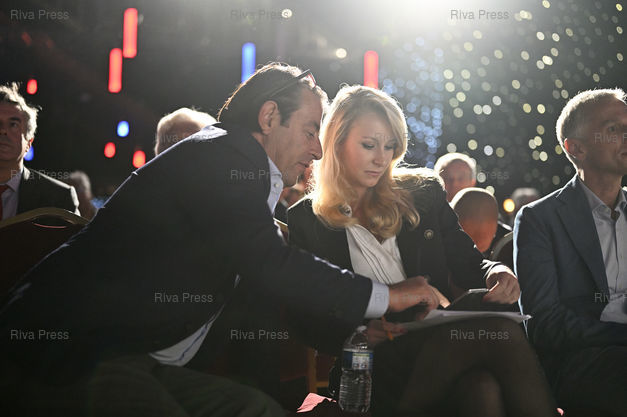 Légende : Première "Convention de la droite", réunion de la droite nationaliste et identitaire, pour une "alternative au progressisme" (La Palmeraie). Samuel Maréchal - Marion Maréchall /// First "Convention of the Right", meeting of the nationalist and far-right, for an "alternative to progressism" (La Palmeraie). Marion Maréchal, granddaughter of Jean-Marie Le Pen, with Samuel Maréchal, her adoptive father - Paris - 28/09/2019 - Photo © Lionel Préau +33 (0)6 68 12 83 77