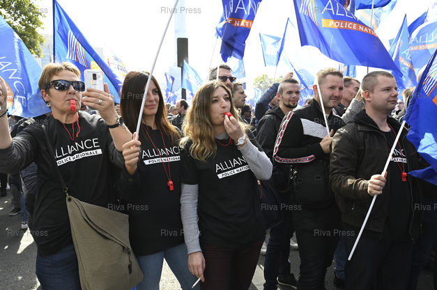 Légende : "Marche de la colère" des policiers qui manifestent pour protester contre leurs conditions de travail, le fort taux de suicide et leurs retraites /// "Walk of anger" of the police demonstrating to protest their working conditions, the high rate of suicide and their pensions - Paris - 02/10/2019 - Photo © Lionel Préau +33 (0)6 68 12 83 77