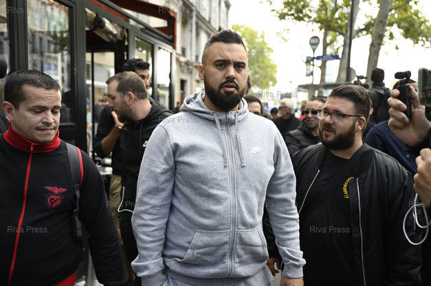 Légende : "Marche de la colère" des policiers qui manifestent pour protester contre leurs conditions de travail, le fort taux de suicide et leurs retraites. Eric Drouet, l'un des leaders des Gilets Jaunes, venu en marge de la manifestation pour rappeler les "violences policières" /// "Walk of anger" of the police demonstrating to protest their working conditions, the high rate of suicide and their pensions. Eric Drouet, one of the leaders of the Yellow Vests, came on the sidelines of the demonstration to recall the "police violence" - Paris - 02/10/2019 - Photo © Lionel Préau +33 (0)6 68 12 83 77